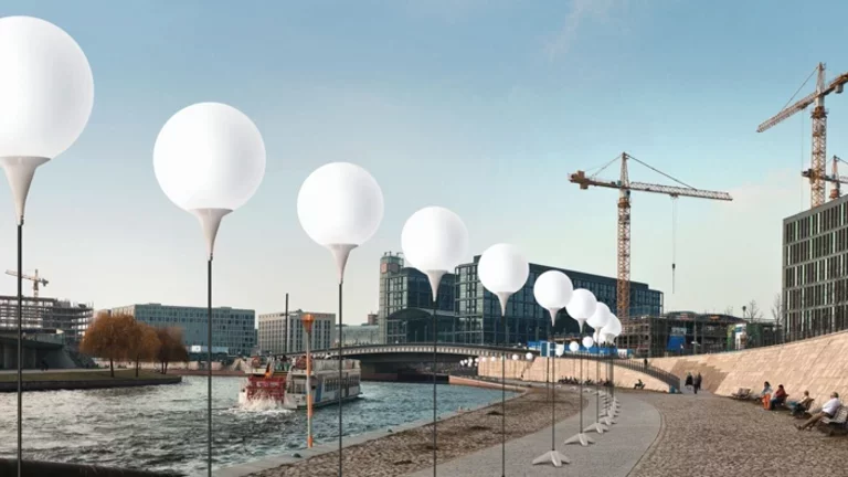 The Light Border will stretch 15 km across the city of Berlin. The balloons will be lit up from 7 to 9 November and, in clear weather, the display should even be visible from space. On the evening of 9 November 2014, upon the signal from the mayor of Berlin, they will be released and float into the sky over Berlin in commemoration of the fall of the Wall.